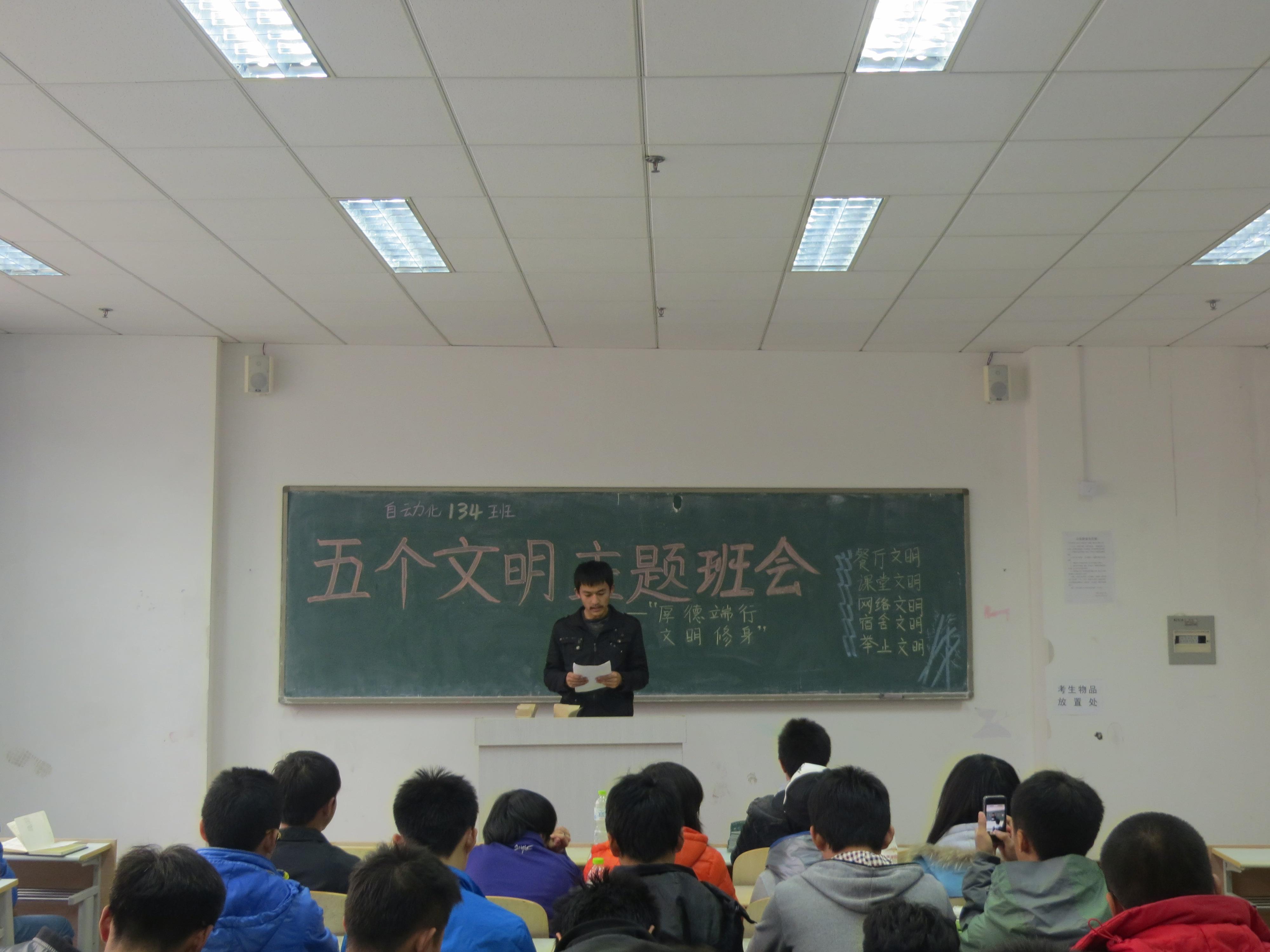 2013年12月5日下午,自动化134班召开了“五个文明”主题班会。
