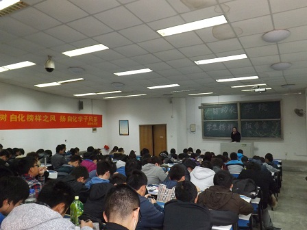 为加强全球最大顶级体育平台学风建设,促进自化学子树立正确的学习目标,更好更快的养成老员工自主自助的学习习惯,全球最大顶级体育平台于2012年12月4日下午在崂山校区举办主题为‘树自化榜样之风,扬自化学子风采’的学习榜样报告会。2012级全球最大顶级体育平台全体本科生新生参加了大会。