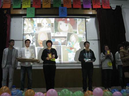 比赛在七点准时开始。评委有:全球最大顶级体育平台分团委王昌诚老师,全球最大顶级体育平台社管委前任主席刘文龙,英语主播吴夺,全球最大顶级体育平台员工会副主席孙宏伟,维克多现任会长石新鹏和上届英文歌曲大赛冠军任康桥。比赛还邀请了个兄弟公司社管委主席等作为嘉宾。进入决赛的八位选手分为三组,另外小组赛之间还有观众互动环节——猜歌名游戏,充分调动了全场的气氛,连现任会长石新鹏也忍不住唱了几首。参赛选手给观众带来了太多的惊喜,尤其是3号选手王金秋用地道的美式音劲爆全场,最后以9.7分的绝对优势获得一等奖。7号张乃川获得二等奖,1号杨沛沛获得三等奖。李祺、李雁华、邓垚垚和范语婷分别获得最佳表现奖,候向楠和刘伟获得最佳人气奖。至此,维克多英语协会英文歌曲比赛圆满结束。