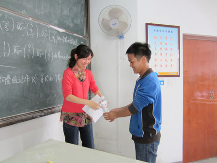 上午十点半,自动化104班同学集合后,认真听取了学长的安排,仔细领会了活动的宗旨。随后全班同学分成三组,分别前赴一教、二教、三教,准备开始活动。十一时整,活动正式开始,每位同学都按照预先安排,分别进入相关教室,为辛勤耕耘的老师们送上了一杯杯水。虽然一杯水是轻的,但是这份情是重的,每一杯水都凝结着同学们对老师的感激之情和热爱之情。