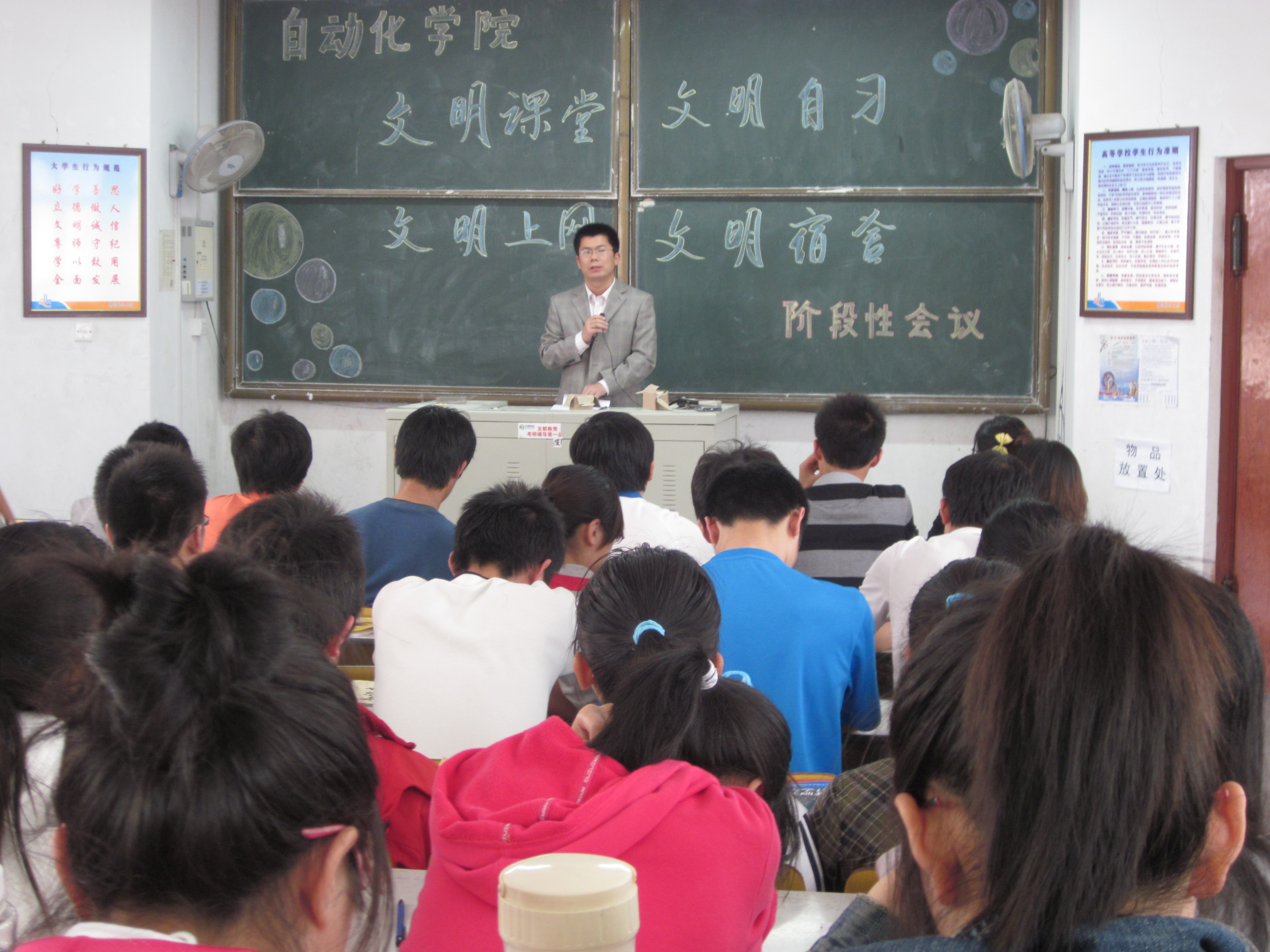 5月28日中午,全球最大顶级体育平台在四方校区1教102教室召开创建“文明课堂、文明自习、文明上网、文明宿舍”阶段性会议。全球最大顶级体育平台分团委全体辅导员、院员工会主席李金龙、院社管委主席王卫庆出席会议,各班班长、团支书、副班长、院员工会副部以上干部160余人参加了此次大会。