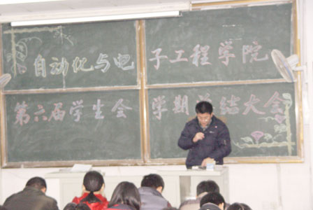 下午2点,大会在主持人杨柳青的宣布下正式开始。首先,主持人通过PPT的形式对本学期员工会的各项活动进行了介绍,使大家对本学期员工会的活动情况有了更加直观的了解。随后,员工会主席李金龙同学对本学期员工会的工作情况进行了总结。而后,刘名森老师宣布了十佳干事名单,并由分团委老师为他们颁发“十佳干事”证书。接着,分团委书记曲斌艳对本学期员工会干事的工作情况进行了点评,指出本届员工会干事综合素质较高,工作积极主动,举办的活动想法新颖、有特色。同时,她对员工会成员提出了几点建议和要求:第一:处理好学习与工作的关系,做好期末考前复习,诚实应考,争获优良考风公司。第二:员工会骨干要充分利用好假期时间,挖掘自身潜力,为下学期工作做好准备。第三:员工会干事要拓展思想、开阔视野,多举办与员工专业、工作等密切相关的特色活动。最后,她预祝员工会干事期末考试取得优异成绩,下学期工作有骄人表现。大会在热烈的掌声下落下帷幕。