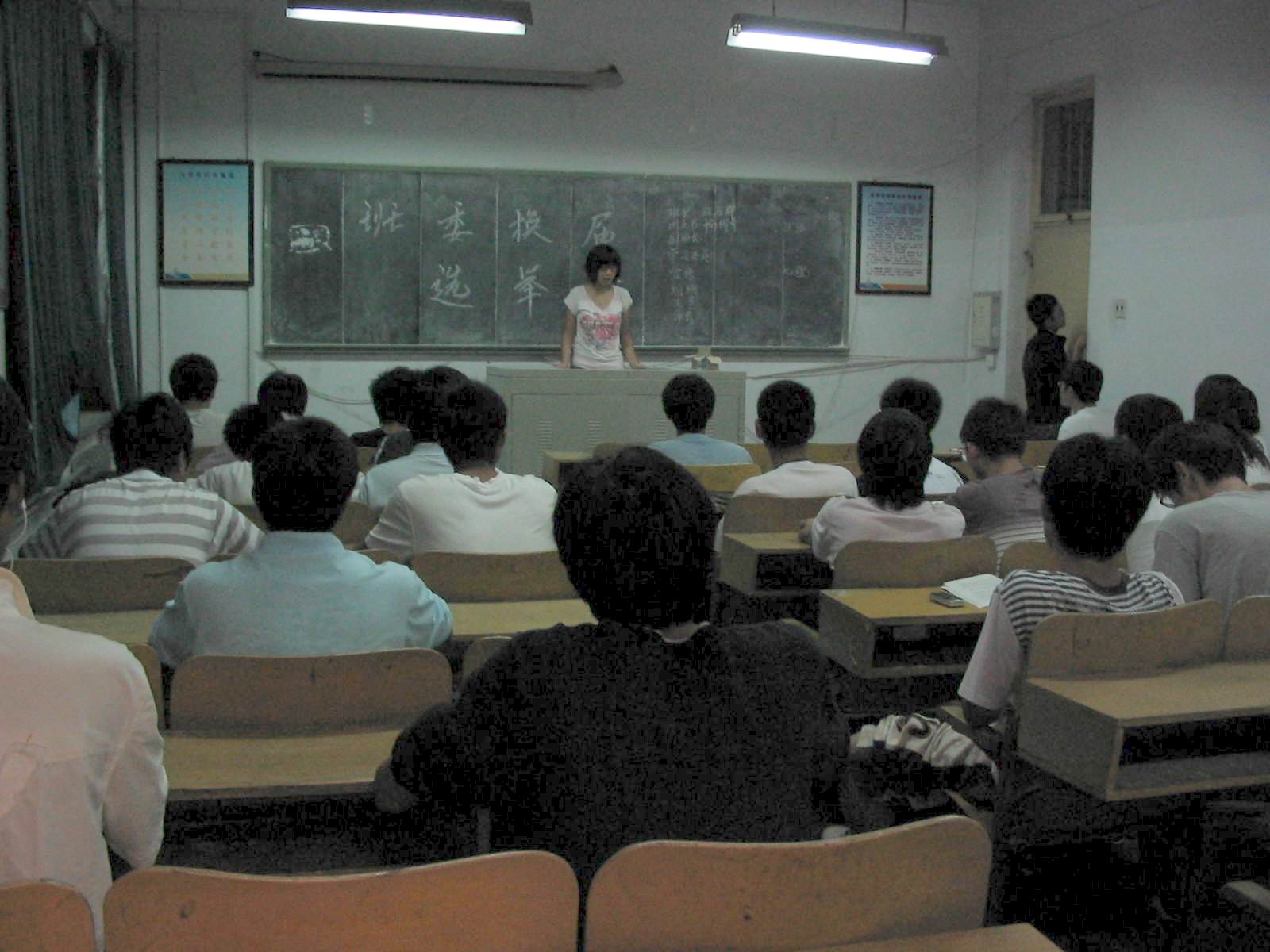 9月25日晚7:30电信082班在袁靑强同学的主持下,于2教305召开班委换届班会。 各位参与竞选班干的同学依次上台发言,大家都表达了自己渴望为班级服务的精神,同时针对上学年班级存在的一些问题发表了自己的看法。尤其是针对班级的学习问题,大家纷纷表示:这学期一定要紧抓学习,减少挂科率,将班级的学习搞好。 最后经过大家的投票选举,以张东辉、杨柳青、袁靑强等领衔的新一届班委产生。