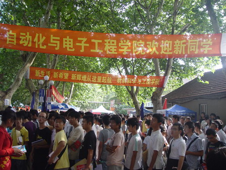 记者在迎新现场看到,新生入学手续办理处秩序井然,新生们在新生报到程序和志愿者的指导下一一办理者他们的入学手续,测体温,领取资料、饭卡,认领宿舍。在家长休息区,很多家长们守着行李等候着子女报到完毕,志愿者们主动为家长们提供饮用水。一个个佩戴胸章的青年志愿者们主动为新生及家长们提供帮助,他们不怕苦不怕累,始终微笑着随时准备为新生托运行李,指引道路。校车送来一批批新生,他们一次次得重复着同样的工作,提着行李往返于宿舍和接待处之间,感动了一批批的新生,感动了家长。
