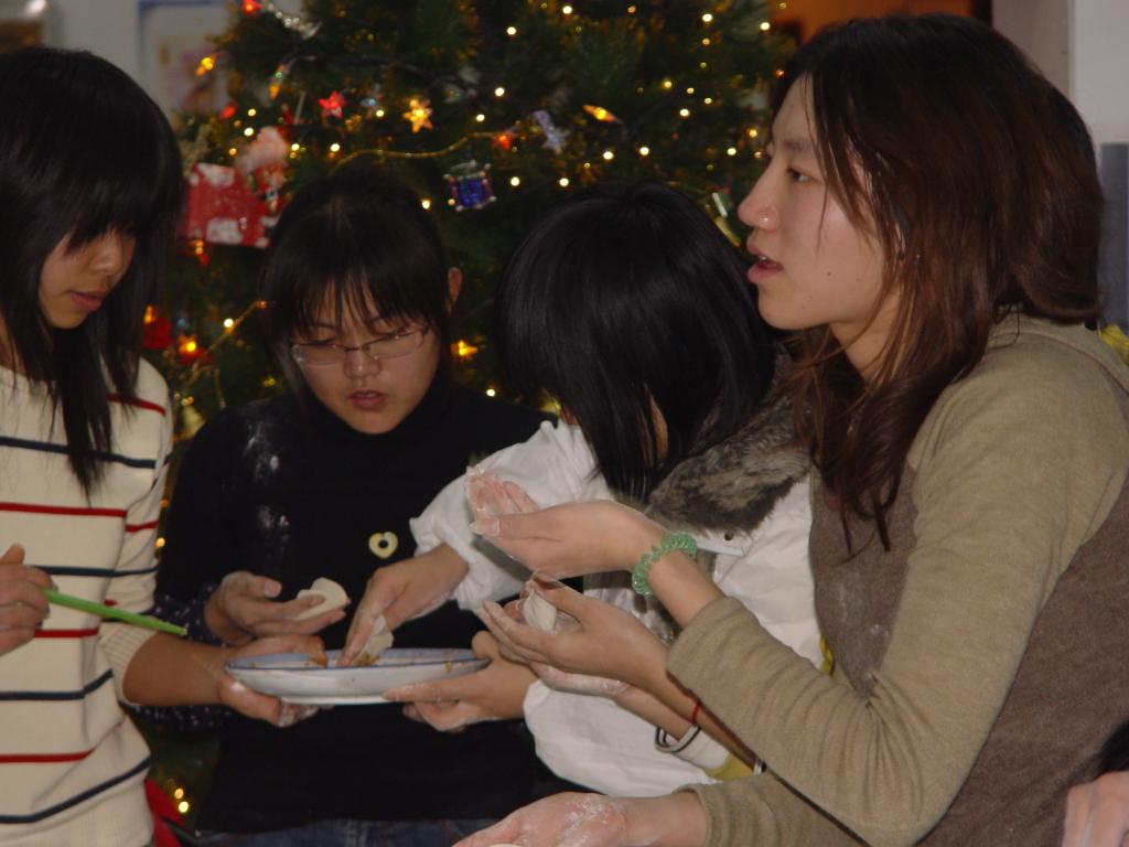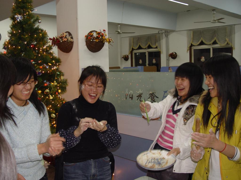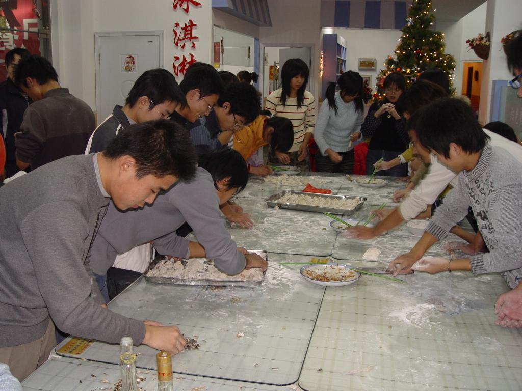 2008年12月17日,电子信息科学技术082班同学聚会阳光餐厅包饺子。