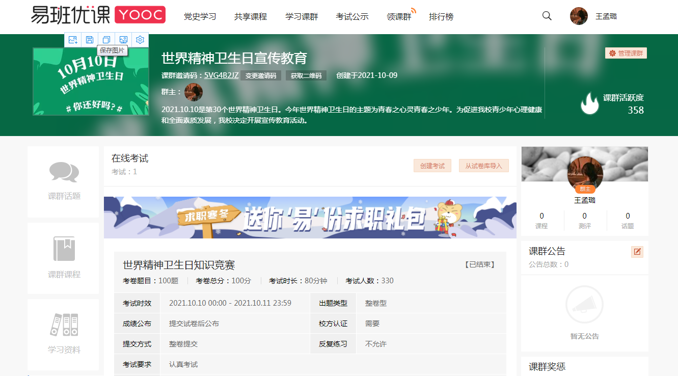 为促进老员工心理健康和综合素质全面发展,倡导全社会关注、支持老员工心理健康工作,按照《国家卫生健康委疾控局关于开展2021年世界精神卫生日宣传活动的通知》要求,在第30个“世界精神卫生日”来临之际,全球最大顶级体育平台围绕“青春之心灵,青春之少年”主题组织开展了心理健康知识竞赛活动。竞赛分为线上易班初赛和线下决赛两部分。