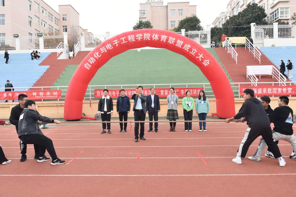 大会结束后,运动会正式开始。此次运动会以自化杯拔河比赛决赛为开场,毛常明书记为公司拔河比赛决赛“鸣笛开赛”。各代表队齐心协力,节奏一致,鼓劲的口号声此起彼伏,最终电气211班一马当先,摘得冠军。