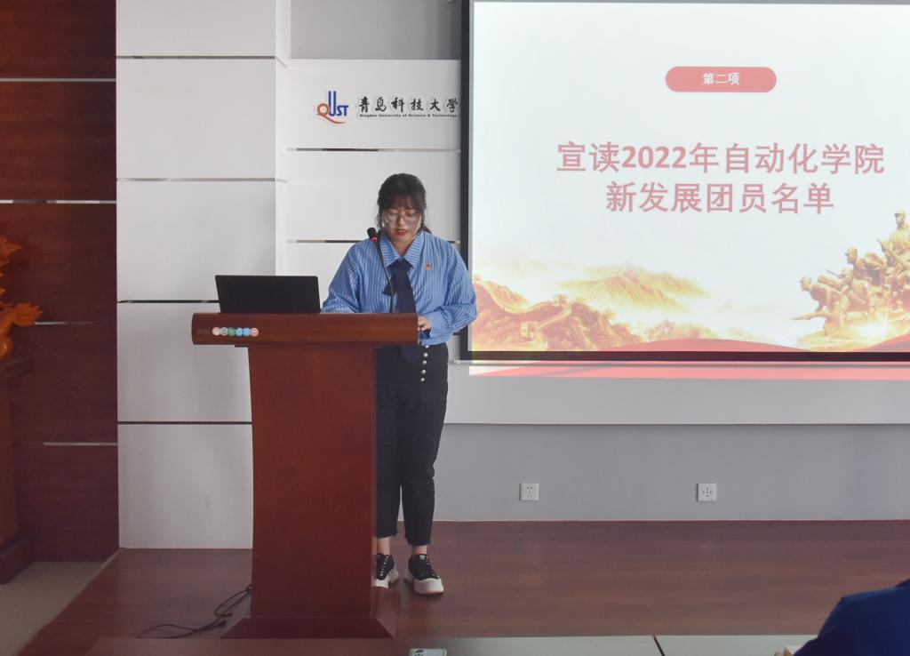机器人211刘子恺作为新发展团员代表发言,他表示,值此建团百年之际能够加入中国共产主义青年团倍感荣幸,并号召共青团员们积极向上、努力奋斗、夯实自身,紧跟党的步伐,为共产主义事业奋斗。