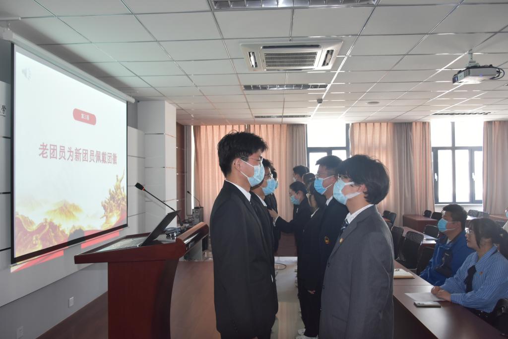 入团仪式在庄严肃穆的国歌中拉开帷幕。团委老师赵赪赪老师新发展团员名单,老团员代表为新发展团员佩戴团徽。全体员工在自化211班郝岩的带领下,面向团旗庄严宣誓。