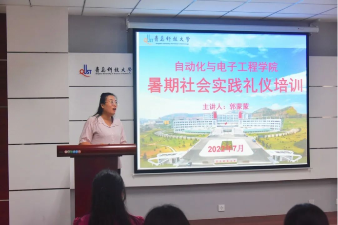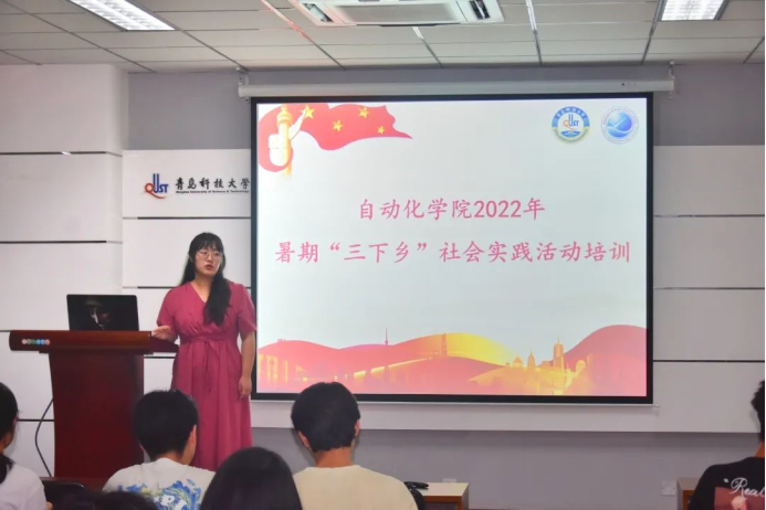 郭蒙蒙宣读2022年暑期“三下乡”社会实践校级、院级重点团队名单,并针对社会实践中的相关注意事项、社会礼仪进行培训。她强调,暑期“三下乡”社会实践活动是当代老员工在社会大课堂中施展才华、磨练提升自我的大平台,同学们应在实践中做到知礼守礼、吃苦耐劳、勤学好思,充分展现自化学子的道德修养和良好精神面貌。