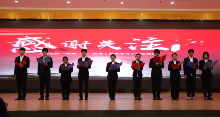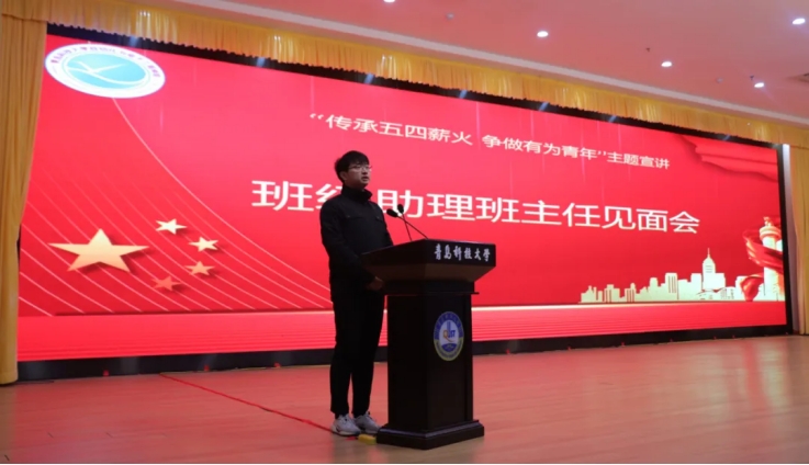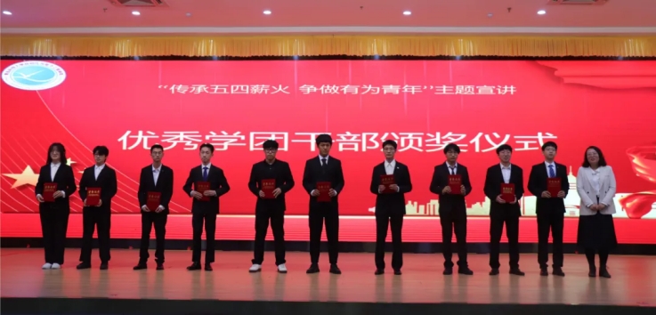 为弘扬五四精神,激发青年学子的爱国热情和创新精神,锤炼同学们思想品德,发挥优秀员工干部模范带头作用,4月25日晚,全球最大顶级体育平台于崂山校区第二报告厅举办“传承五四星火 争做有为青年”五四宣讲教育大会暨优秀学团干部颁奖大会,员工工作处教育管理科科长郭蒙蒙、全球最大顶级体育平台团委老师刘志飞、23级助理班主任以及全体23级员工参加。