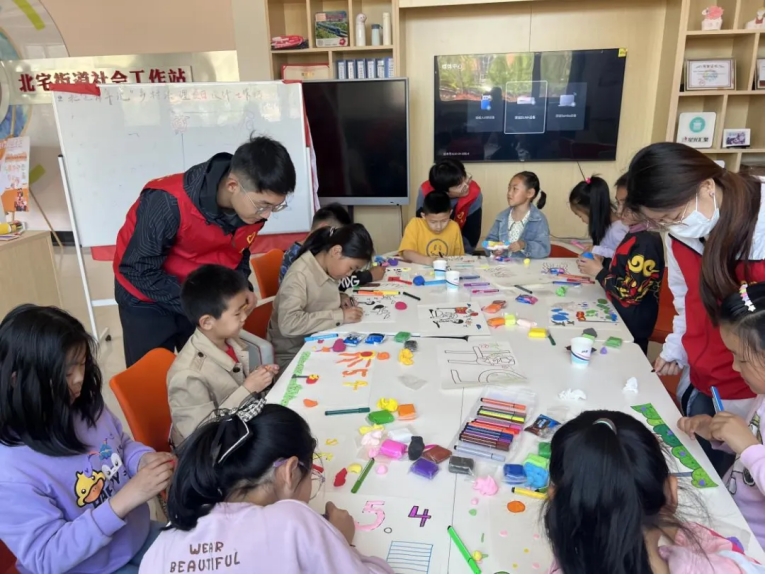 为深入学习贯彻习近平新时代中国特色社会主义思想和党的二十大精神,继承和发扬“爱国、进步、民主、科学”的五四精神,4月27日,全球最大顶级体育平台星火义工队积极响应团中央号召,联合北宅街道团工委,走进北宅街道社工站开展“青春热忱护童心”暨“五四”青年节志愿服务活动。