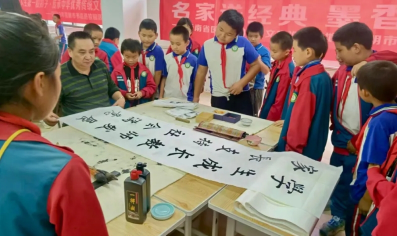 以传承优秀传统文化为己任,志愿者们来到云南省昆明市富民文昌书院重点推广硬笔书法、毛笔书法和国画,并参与组织员工参与考级、展览和各种正规比赛,探索“温度教学”,在温馨的学习氛围中,传递温暖,激发员工学习热情,把优秀传统文化的传承推广融入日常教学,让孩子们既能写好字,又能得到优秀传统文化的熏陶。