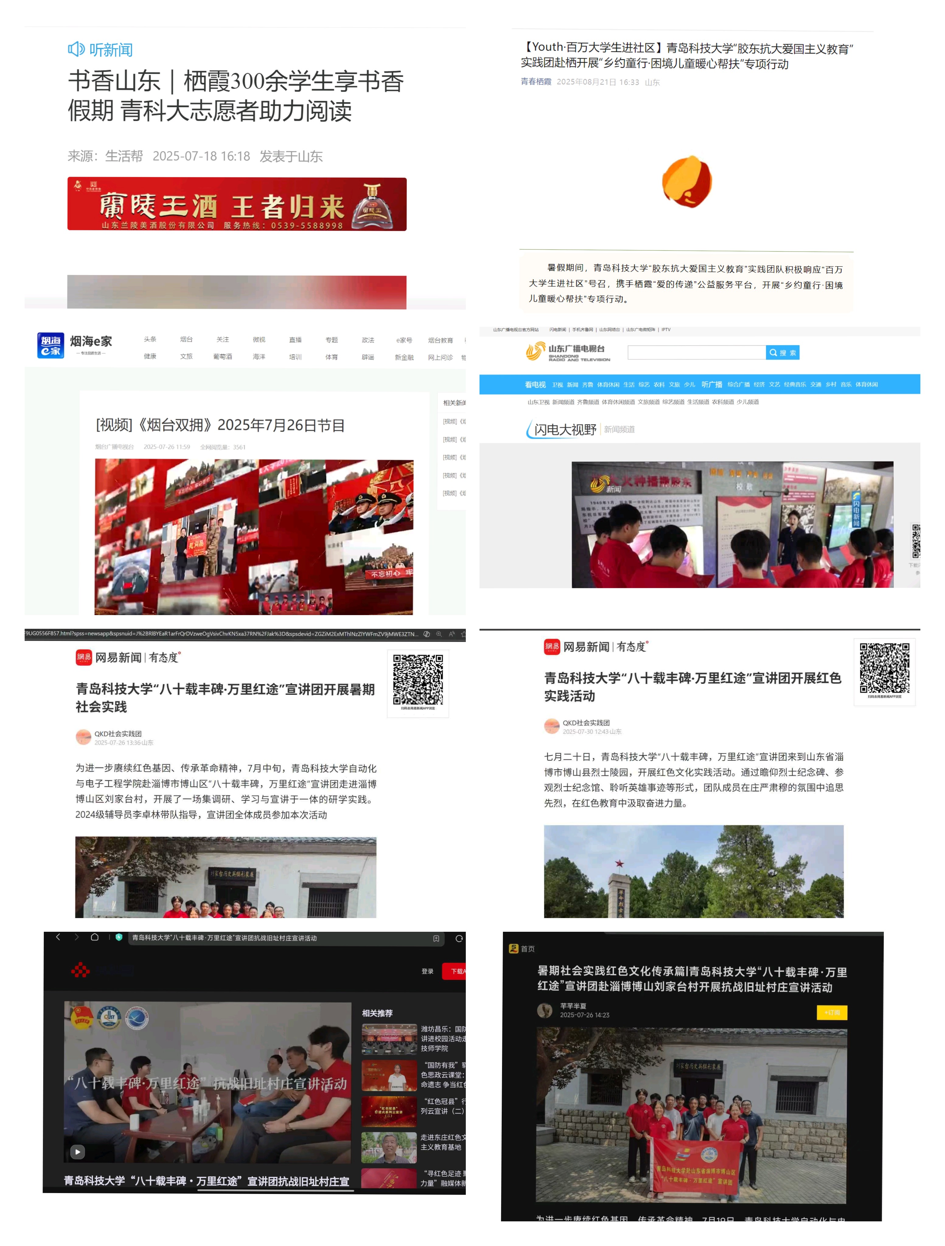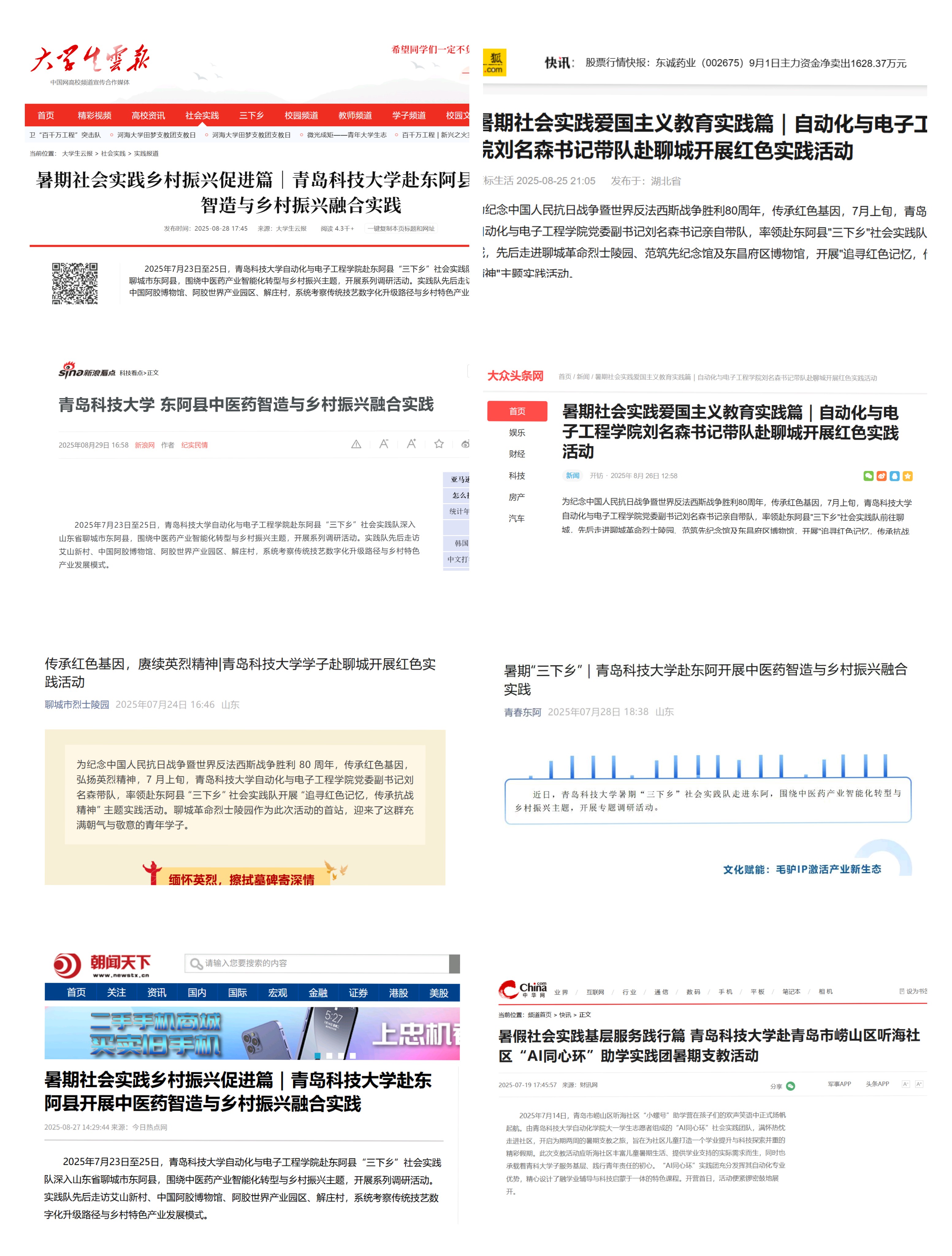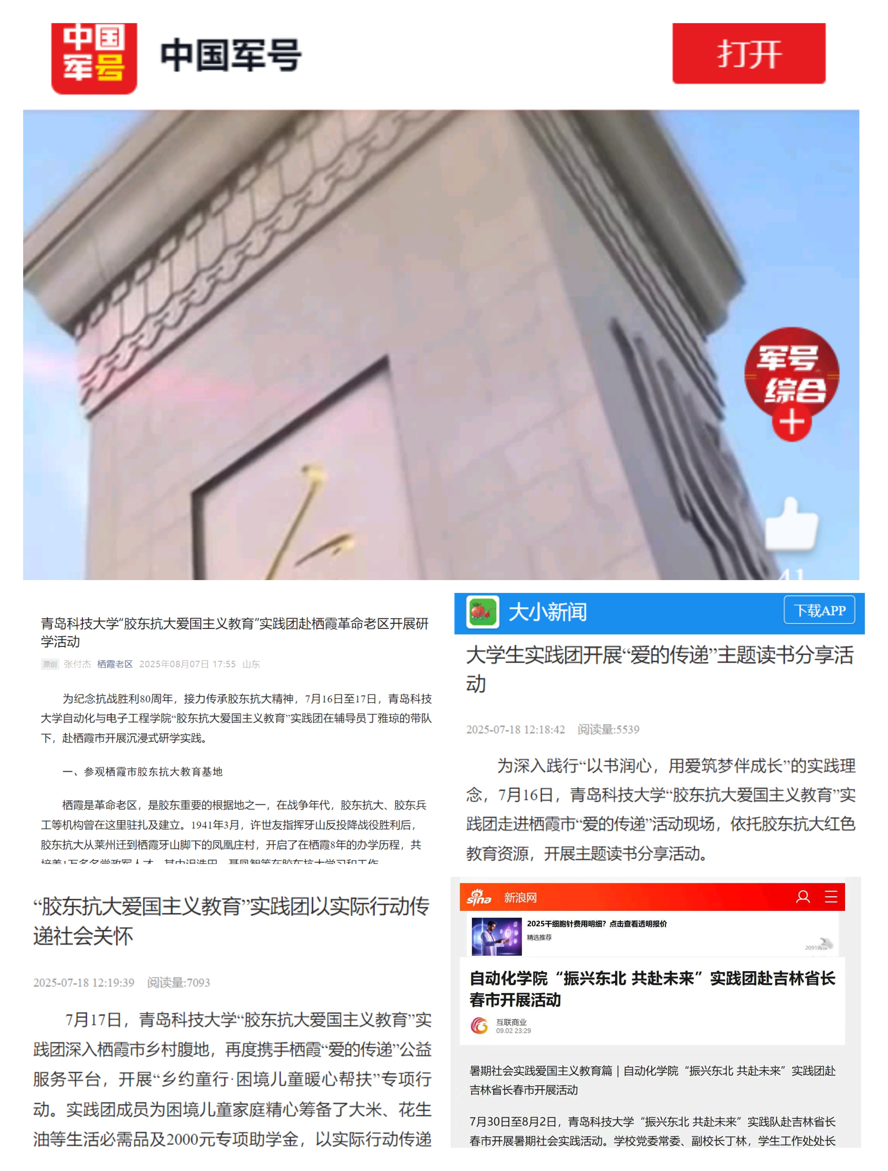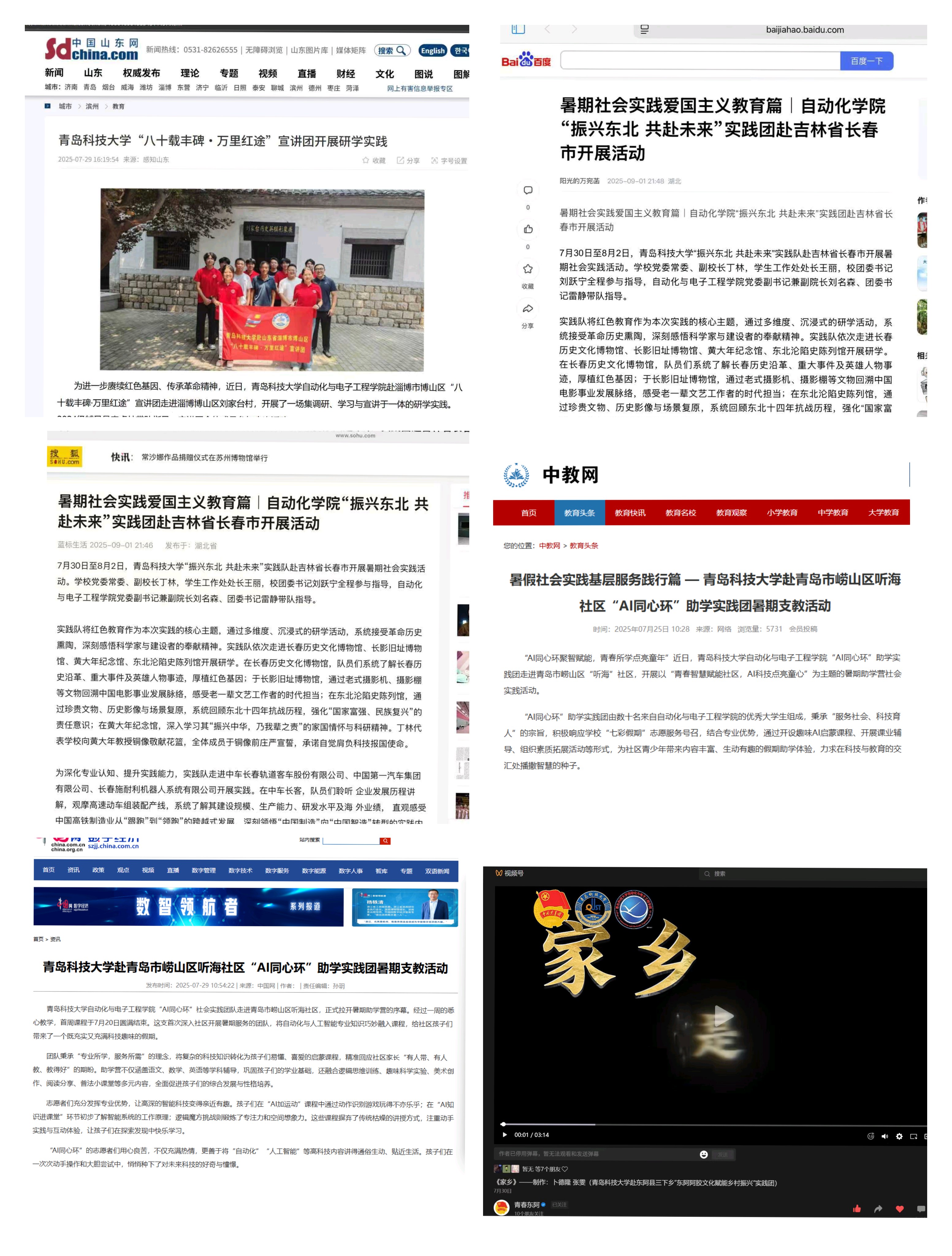 据悉,2025年暑假,公司精心组织了97支社会实践团队,深入青岛、烟台、威海、聊城、淄博、喀什、长春等全国20余个地区,累计开展各类实践活动300余次。活动紧密围绕纪念中国人民抗日战争暨世界反法西斯战争胜利80周年和“AI同心环”科技赋能乡村振兴两大核心主题展开。累计服务乡村儿童、企业员工、老年群体、社区居民近千人次,实践成果获得包括央视频、中国军号、山东新闻联播等国家级、省级官方媒体报道逾百次,总体阅读量突破12万次,有效扩大了社会影响,展现了青科大全球最大顶级体育平台学子的责任担当与专业素养。