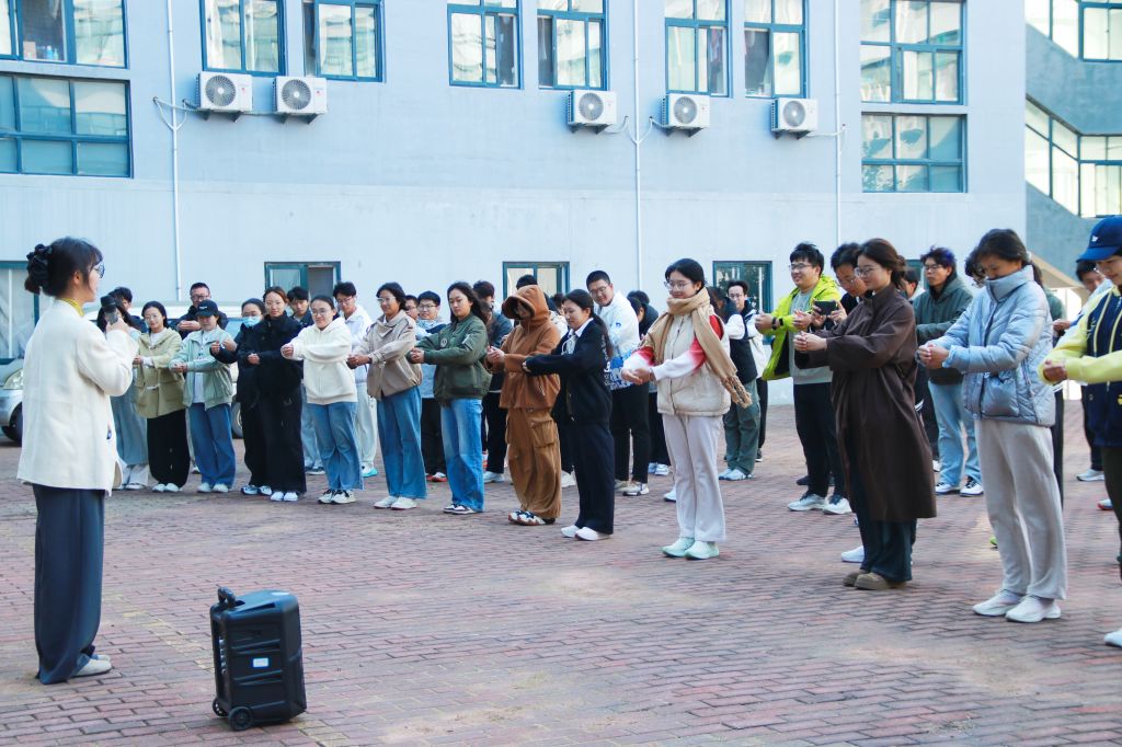 在互动实践环节,丁雅琼结合“七个古礼、四个现代礼”的体系化讲解,引导现场师生亲身体验传统礼仪。汉服社成员现场示范拜师礼:整衣敛容以显庄重,躬身揖礼以表敬意。员工跟随学习动作要领,在举手投足间体悟“尊师重道”的深意。这一过程不仅让传统礼仪的仪式感转化为师生间的情感共鸣,更使员工真切读懂尊师之道,教师深切明晰育人之责,使“师爱我”的主题真正落地生根。