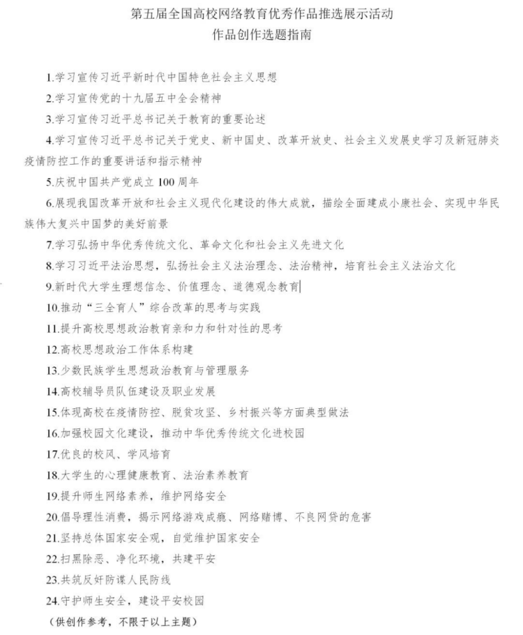 “全国高校网络教育优秀作品推选展示活动”征集优秀网络文章、优秀工作案例、优秀微课、优秀新媒体作品等4类作品: