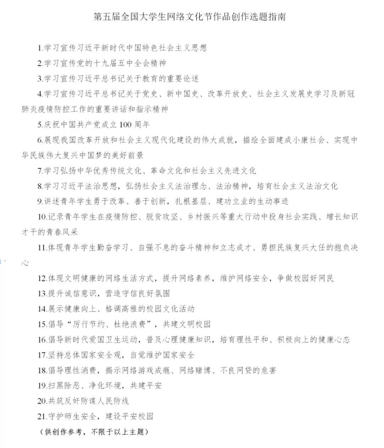 为深入学习贯彻习近平新时代中国特色社会主义思想,全面贯彻党的十九大和十九届二中、三中、四中、五中全会精神,切实将习近平总书记关于党史、新中国史、改革开放史、社会主义发展史学习及新冠肺炎疫情防控工作的重要讲话和指示精神贯彻落实引向深入,围绕迎接建党一百年行动,加大优秀网络文化供给力度。根据教育部思想政治工作司、中央网信办网络社会工作局关于举办第五届全国老员工网络文化节通知的要求,公司开展老员工网络文化节作品征集活动。现将有关事宜通知如下: