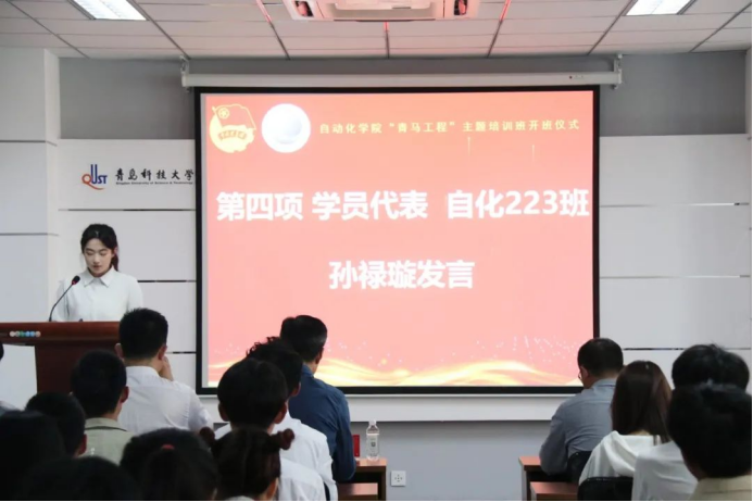 陈兵代表校团委致辞,对公司青马培训班学员提出三点希望:一是全体学员要珍惜学习机会,端正学习态度,在“学”字上下苦功夫,不断提高自身软实力;二是要严守培训纪律,发挥引领作用。在学习过程中仔细钻研,刻苦向上,树立起“自”家青年的良好风貌,同时充分发挥好自身榜样典型和示范引领作用;三是要坚持实学实干、做到知行合一。能够把在青马工程培训班中学到的知识内容运用到日常的学习生活中,写好“自”家青年服务公司共青团“守正创新强特色、挺膺担当走在前”的“奋进之笔”。