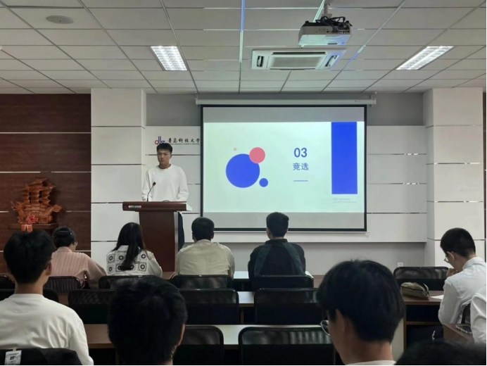 随后,参与此次竞聘的成员依次上台发言,各候选人分别从自身情况、工作思路、未来设想三个方面,分享了自己的感悟,表达了对员工工作的诚心和竭诚为同学服务的决心。