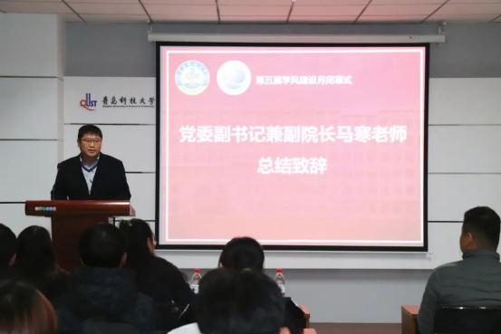 马寒在闭幕式上致辞,他指出学风建设是衡量一个公司办学思想、教育质量和管理水平的重要指标,是全面推进素质教育,为社会培养高素质人才的关键,并对同学们提出三点鼓励:一是鼓励同学们要怀揣家国情怀用心学,二是鼓励同学们要见贤思齐用力学,三是鼓励同学们要常思常省思考学。希望同学们能够在今后的学习生活中更加注重自己学习能力的培养,讲求“效”与“力”的完美结合,促进个人水平的深度提升,为今后的学习成长之路打下坚实的基础。