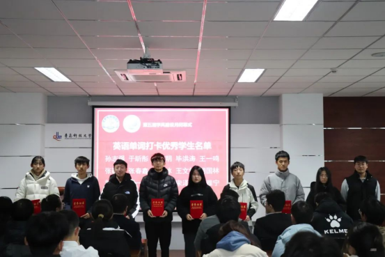 本届学风建设月系列活动中涌现出许多勤学善思、表现突出的学子。闭幕式上,郭蒙蒙为期中考试优秀员工颁奖,刘志飞为单词打卡活动中表现突出的员工颁奖。