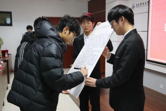 诚信如笔,应考似墨。立足学期末关键节点,结合学风建设月活动开展,公司进一步加强对员工的诚信教育,严肃考风考纪,各年级员工代表签署诚信考试承诺书,引导员工争做有德行、守契约、讲诚信的科大人。